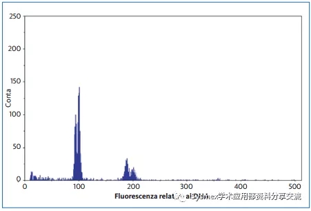 在生理條件下,細胞自然呈現(xiàn)不同階段的細胞周期的DNA圖譜。