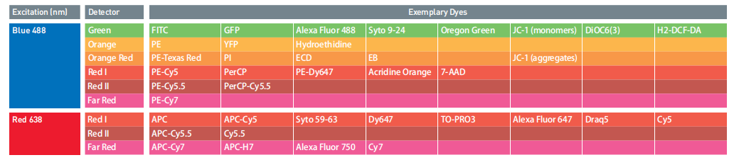 ●卓越的靈敏熒光:≤100 MESF(FITC) ;≤50 MESF(PE) ;